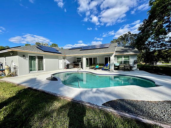 Beautifully and completely remodeled solar sustainable, ecofriendly 4 bedroom, 2.5 bath CBS pool home in Jupiter Farms. No detail overlooked in this modern farmhouse charmer from the gorgeous chef's kitchen to the upgraded master bath with spa tub and rain shower system to the outdoor kitchen with movie projector overlooking your pool! All upgrades done in the last two years; new upgraded vinyl wood flooring, upgraded kitchen with quartz counters, new stainless appliances and gas range, new roof (2019), new impact windows and a brand-new whole house solar system (Oct 2022, $80,000 value!) Imagine no electric bill and make a little money selling the electricity back! This house will not disappoint!
