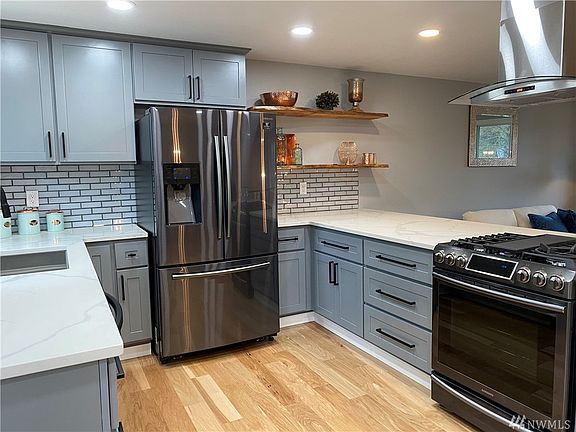 Beautifully remodeled in Fairwood Park! Everything has been updated in this bright,open concept split entry home. New interior&exterior paint&new flooring throughout. Eye-catching sleek tile gas fireplace. Modernized kitchen w/glass tile backsplash, quartz countertops, custom wood shelves,new cabinets&SS appliances.All 2.25 baths have been stunningly refreshed.Heated floors in the master.Huge downstairs bonus area including glamorous&extremely functional utility room equipped w/great workspace.