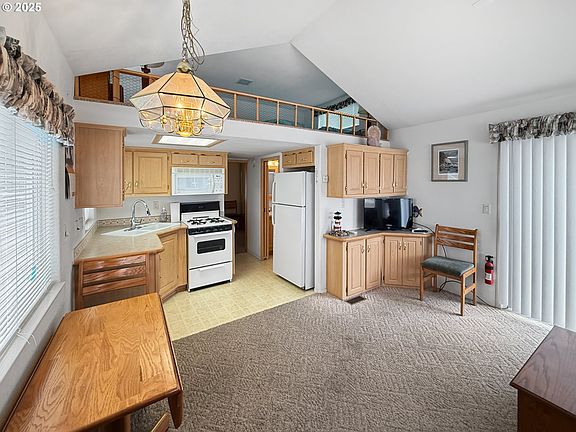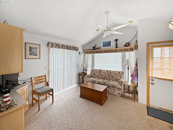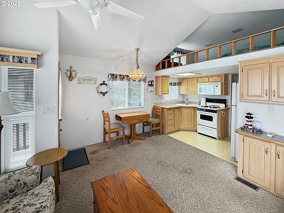 OCEANVIEW COTTAGE in the Brookings Harbor Port where the Chetco River meets the Ocean and walking distance to Sport Haven Beach, Restaurants, and Marina! A perfect get-a-way home for your beach vacations or great for full time living. Ocean views from your covered porch. Inside is nice and bright with natural light and vaulted ceilings. Open living room and kitchen with propane gas cooking stove. Includes a loft for additional bed or storage. Comes fully furnished as shown so you can move right in. Space rent is $700/mo. and includes Water, Sewer, Trash, Cable TV, WiFi, Community Center/ Recreation Room, Laundromat and Park Management/Maintenance. Small shed for extra storage. Two pet maximum, no large breed dogs (40+ lb).