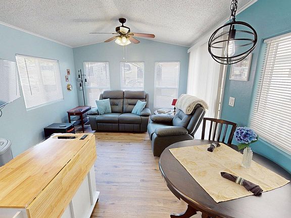 Remodeled and Upgraded Beachside Retreat!Just a stone’s throw from the ocean and Sporthaven Beach, this beautifully upgraded unit offers the ideal coastal lifestyle—steps from festivals, shopping, and dining. Inside, you’ll find thoughtful updates throughout, including custom interior paint, luxury vinyl plank flooring, and a brand-new propane stove with griddle and oven. The kitchen also features a new refrigerator and upgraded faucets. Comfort meets style in the sleeping area with a new queen-size bed, mattress, and nightstands, while the bathroom boasts a new vanity and dual medicine cabinets.Additional interior upgrades include new blinds, updated windows with screens, and a convenient doggie door leading to the newly updated deck. The deck has been enhanced with new gates and handrails, perfect for relaxing or entertaining. A spacious storage/hobby area with lighting and electrical provides room for creative projects, and the locked, dry under-deck storage is ideal for organizing plastic containers or seasonal items.Space rent is $750/month and includes water, sewer, garbage, internet, cable tv and party room usage.