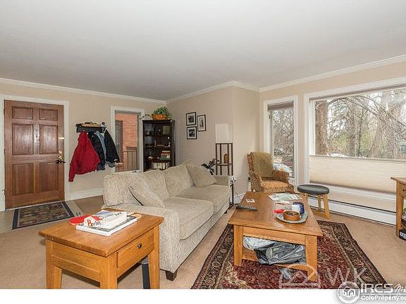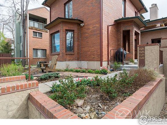 Two bedroom, 3 bath townhome style condo in fabulous downtown Boulder! Only a few short blocks to the middle of downtown Pearl Street shopping and restaurants & close to CU and Naropa!Large bedrooms w/high ceilings/crown molding include their own private baths. 2 story provides privacy from main living area. Dining/sitting area off kitchen. Large open living area with beautiful wood burning fireplace.Covered garage w/1 space. Washer/dryer in unit. Balcony off bedroom & patio off kitchen for BBQ!