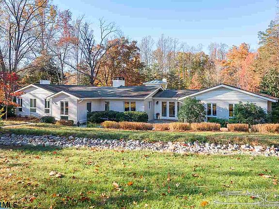 Please note the attached floor plans and bedroom dimensions. Two bedrooms are 11'x11'. Mainly one level living with a non traditional layout. Transformed Ivy mid century gem bathed in natural light on over 9 park like acres. The great room features 10' ceilings, hand-cut stone fireplace with gas insert, Velux skylights, & hardwood floors. The updated kitchen includes granite counters; Electrolux induction range with double ovens; Maytag dishwasher; KitchenAid refrigerator; Vermont Castings wood stove, and breakfast room. The updated bathrooms offer granite, & Kohler accessories. Freshly painted interior & exterior; hardwood & Mexican tile floors; & Pennsylvania blue stone front terrace & portico. Contemporary style in a beautiful setting.