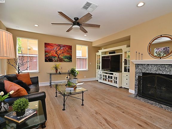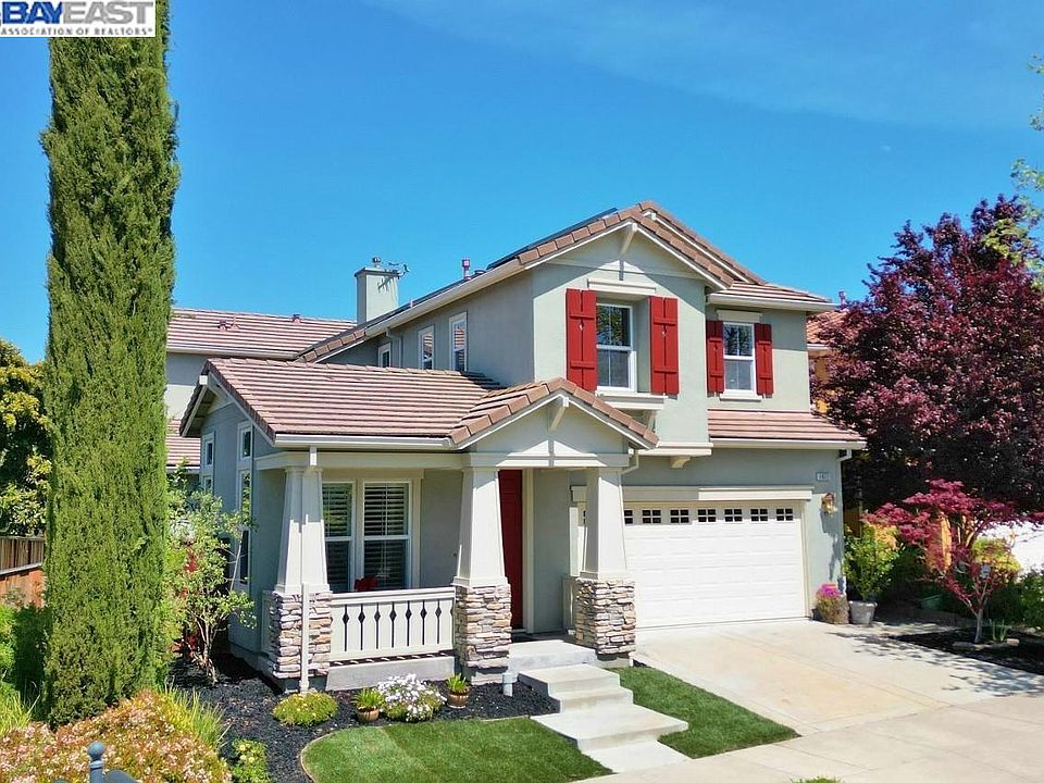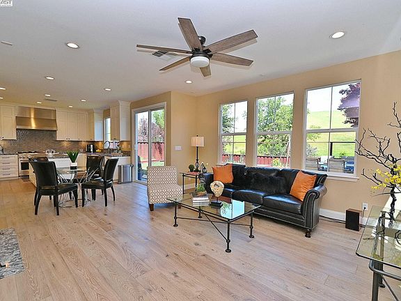 This absolutely beautiful home is conveniently located within walking distance to Windemere Ranch Middle School, Live Oak Elementary and Dougherty High School. It features 5 bedrooms and 3 1/2 bathrooms with one full bath and bedroom downstairs and backs to gorgeous rolling hills. The open floor plan consists of 2,661 square feet of living space with incredible upgrades throughout the home. Newer water softener and water heater plus owned solar panels and a two Tesla power walls! Over $425,000 in recent updates including engineered hardwood flooring, updated custom kitchen featuring stunning white cabinets, tile backsplash, stainless steel refrigerator, 6 burner Monogram cooktop, two ovens, double dish washer drawers, full extension soft close drawers, microwave & wine refrigerator. The gorgeous bathrooms feature tile flooring and showers with LED lighted smart mirrors and freestanding soaking tub in primary. Generous storage throughout the home including custom storage cabinets in the garage and closets, pantry area with pull out drawers and extra storage in upstairs bathrooms. Enjoy the incredible view seated on the backyard patio and watch your own vegetables grow in the planting beds. Easy access to BART, 580 and 680, shopping, restaurants and the San Ramon City Center!