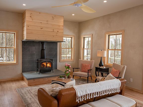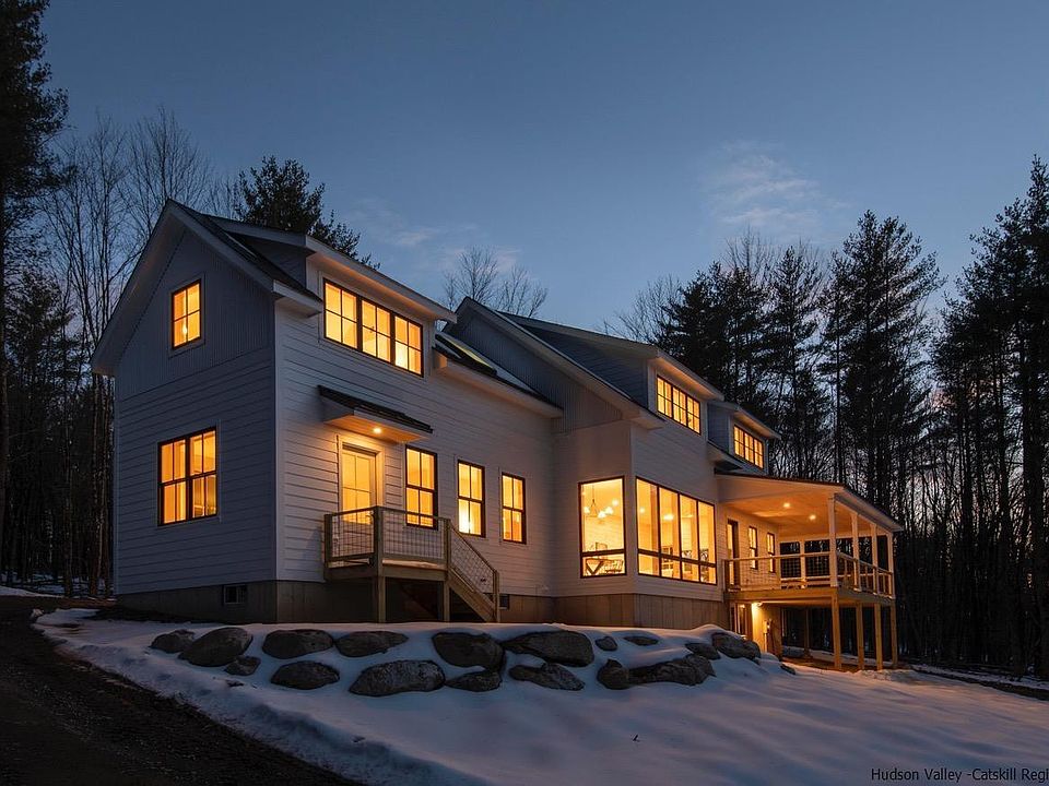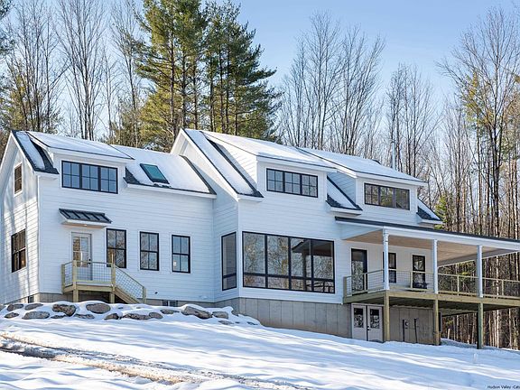 Welcome to your dream home in the heart of the Hudson Valley! This thoughtfully designed modern farmhouse has the heart of a Hudson Valley classic and is the perfect blend of contemporary design and cozy charm. Once inside you are immediately captivated by panoramic mountain views that fill the living and dining rooms. The open-concept living area with high ceilings, beautiful hardwood floors, and plenty of natural light are all about modern living but the attention to details, with of course a wood-stove, echo the charm and interest of the historic farmhouses of the area. Warm red oak flooring complimenting lots of pine trim and walls, are balanced with warm grey artisan plaster for soft and textural walls and lots of soft diffuse lighting. This mix of modern and classic creates a home that is both stunning and full of grace. The contemporary kitchen features custom cabinetry with tons of storage, leathered granite countertops, Bosch stainless steel appliances, and a center island. This is undoubtedly a cook's kitchen that’s also perfect for entertaining and opens up to the dining area and living room, creating a seamless flow between spaces. The first floor also features a spacious family room, a perfect escape for relaxing, reading ,and/or TV, as well as a convenient and beautiful half bath and laundry room/pantry. Upstairs, you'll find four spacious bedrooms, including a primary suite with a walk-in closet and an en-suite spa like bathroom featuring cedar walls, a double vanity, and a walk-in shower with slate tile. The other three bedrooms are equally spacious and share a beautifully appointed full bath also with a double sink, large shower and separate soaking tub. Outside, you'll find a wrap-around covered deck off the living room, perfect for enjoying your morning coffee or watching the sunset over the mountains, or just hanging out even on rainy days. The property also includes plenty of gorgeous grounds for gardening, playing, and entertaining. Located in the charming town of Kerhonkson, this home is just minutes from the Mohonk Preserve, Minnewaska State Park, and some of the best hiking and outdoor recreation in the region. Also not far are the latest Hudson Valley hotspots, Inness, ArrowWood Brewery, Westwind Orchards. Don't miss your chance to own this stunning modern farmhouse in the heart of the Hudson Valley!