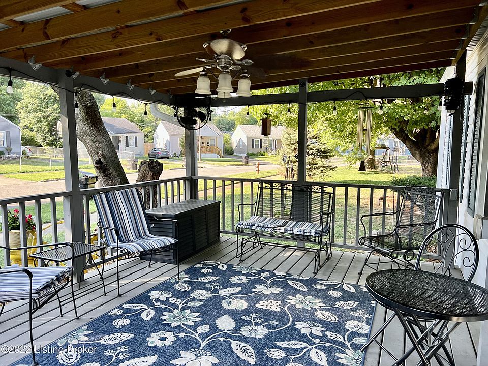 For 60 years the current owner has loved and cared for this little gem near Churchill Downs. From the moment you pull in the driveway you know it is special. All on one floor you will enjoy the living room, eat-in kitchen with all appliances including the washer and dryer, the 2 bedrooms and an updated full bath. As cute as the inside is, the outside spaces are terrific. You will absolutely love the covered front porch, I guarantee this space will become like another room for you. The back yard and side yard are both great as well and it is fenced. There is a patio, storage shed and even bamboo growing which is so awesome. The yard is extra wide and provides for great privacy on one side. This is a wonderful first home or investment property, you need to come see it before it's too late.