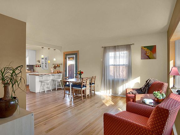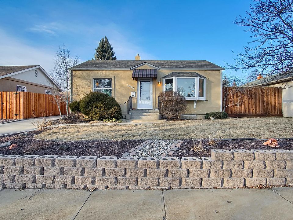 This charming home sits within walking distance of parks and within a 5 minute bike ride to Downtown! This mid century rancher has been loved on and cared for and it shows. The home has a newer roof, stucco, updated windows and updated HVAC. Cosmetic remodel was completed in the last few years as well. Open kitchen and living room layout makes this home great for entertaining and the back and side door configuration allows for the patio and backyard to serve as a natural extension of the living room. Two bedrooms on the main level with an updated full bath. Basement has a large den with a gas fired stove that will quickly heat the whole house on the coldest of days. The largest bedroom in the home is in the basement with a beautiful 3/4 bath attached to it. Detached one car garage offers plenty of storage options and the extended driveway has enough room to easily park 3 cars. Beautifully done patio is accessed from the side door is a great extension of the living space for the summer months. Home warranty included!