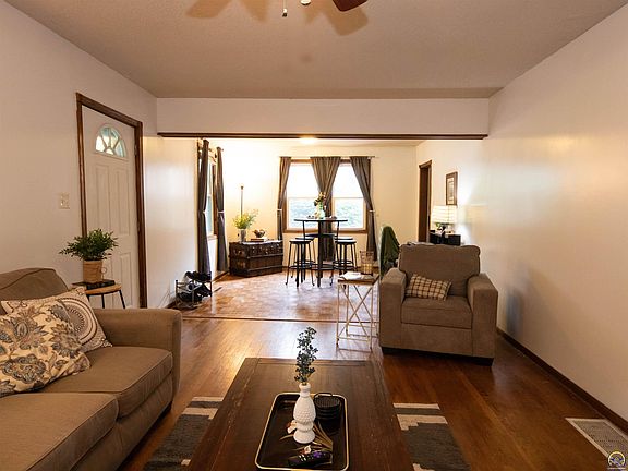 This gem of a street has a new listing! A 3 bedroom, 2 bath ranch home with a detached garage is ready for the first time homebuyer, college investment property or downsizing! Spacious living room with a decorative fireplace surrounded by built-ins opens up into the dining. The updated kitchen with a breakfast nook area that was once a back porch is functional and steps out onto a large deck. One bedroom and a hall bath off the living room and two others are at the south end of the home with a bathroom. Primary bedroom is large and has patio doors that open up onto the deck. Replacement windows and vinyl siding make this home efficient and easy maintenance. Let's schedule your private showing today!