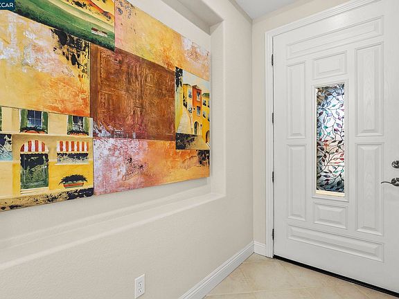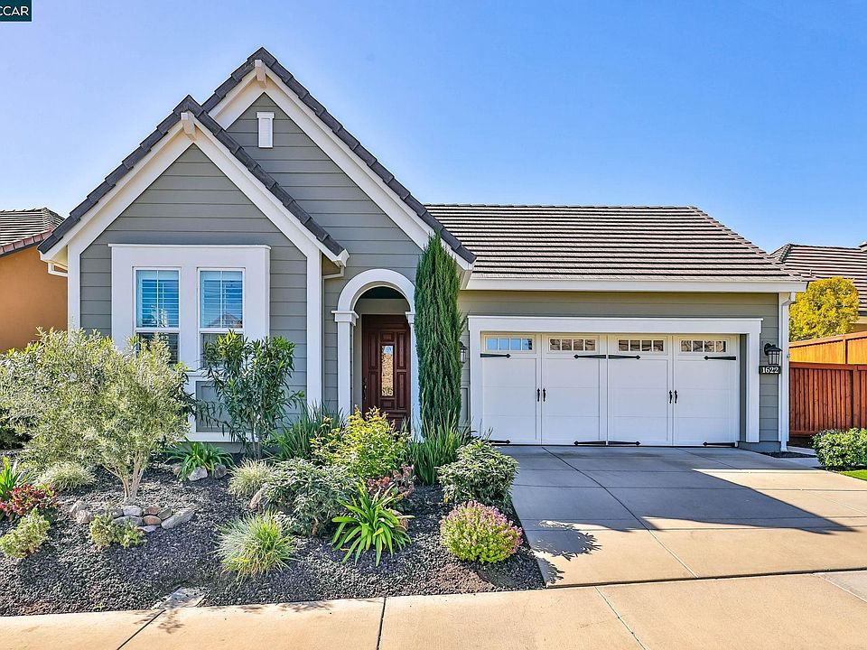 55+ Resort Living in Trilogy. Quiet Location with Extensive Large Tile Floors, Ceiling Fans, Shutters and Upgraded Cabinets. Designed with High Ceilings, Expansive Kitchen Granite Counters and Cabinets. Built-in Matching Refrigerator. Entertain Easily from the Kitchen, Through the French Doors to the Side Patio or Dining Area. Large Great Room with Motorized Roman Shades, Enter the Office through French Doors to the Built-in Cabinets and Shelves with Plenty of Room for a Large Desk and a View of Side Patio. Laundry Room with Cabinets and Sink. Garage with Loads of Built-in Cabinets. Freshly Painted Exterior. Colorful Plants, Trees, Decorative Retaining Wall, Pavers throughout and Lovely Arbor. All Lovingly Maintained by the Owners. Gorgeous Clubhouse, Café, Spa Facility, Pickle Ball, Bocce & Tennis Courts, Indoor & Outdoor Pools and so Much More