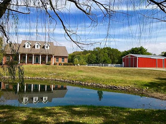 If you want the feel of country in the city, this is it! This beautiful colonial style home sits on its own private, stocked lake. The home has 5 bedrooms, 4 bathrooms, and a large kitchen with ample cabinet, counter space, and pantry. You will love the vaulted ceilings in the living room, double fireplace that opens onto the year round sun room, and spacious dining room with hardwood floors. The basement has a family room, game room, 2 bedrooms, and a bathroom. There is also plenty of cedar closets, and storage for all your holiday decorations and extra belongings. There is a 50x30 barn that includes horse stalls, and acreage has vinyl, fenced pasture. This beautiful horse farm is one of a kind!