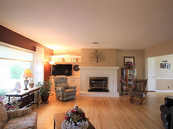 Pride of Ownership of bounds in this beautiful ranch home located near Skyview Lake! Large living room provides abundant natural light, beautifully finished wood floors, and captivating fireplace! Formal dining room offers a view of the amazing flower garden, providing a feeling of your own little acreage right in town! Kitchen offers abundance storage, updated flooring and all appliances stay! Main level also offers three bedrooms, the bonus room in the basement can easily be converted into a fourth bedroom! Basement offers huge family room, second bathroom, separate utility room and large storage/workshop area. Provides Brick exterior; shingles, windows and most flooring has have been updated. Desirable NW area!