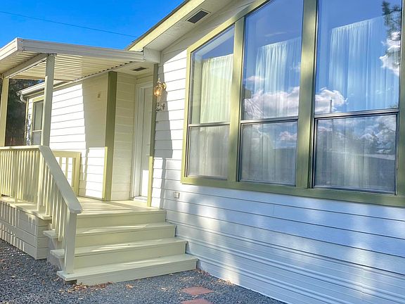 Super clean and well-maintained describes this beautiful 3 bedroom, 2 bath manufactured home. Located in this quiet 55+ park with almost 1700sq. ft. of living space. There is a split floor plan with a large master bedroom with two walk in closets and master bath with double sinks, step-in shower and a soaking tub. The vaulted ceilings and an inviting kitchen are great for entertaining. The enclosed carport is ideal for winter parking. Make an appointment today! The space rent also includes water, sewer, and garbage.