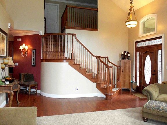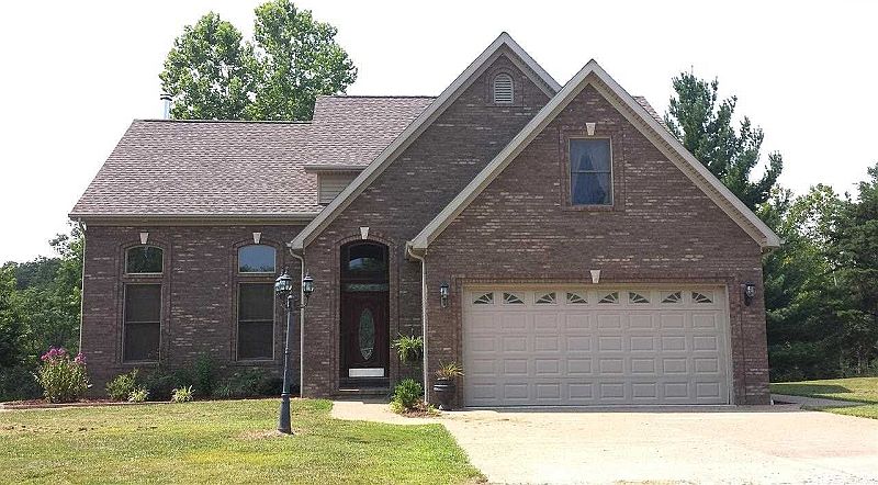 Country Setting with Lake, over seven pristine acres, 60 x 40 pole barn and beautiful two story brick home built in 2007 yet 10 minutes to Hwy I64 or Boonville. Home has 4 bedrooms, 2.5 baths, deck on rear and 2.5 car garage. Amenities of this home include all Amish built cabinetry, Grand Fireplace with wood storage that has outside access, Bose surround sound, unusual architectural rounded staircase wall, dining room built in planning area, mud room bench and coat rack, TV Shelves in all bedrooms, cro wn molding and climate control attic storage. Entering the home is the Rounded stairway, stunning chandelier and Great Room with grand fireplace wall that is flanked by windows and then flows around to the dining and kitchen area. Opposite the sitting area between the great room and dining room is the double doors that leads to the spacious master suite with bath featuring jacuzzi tub, Corian sinks and stone tile. Home has hardwood, tile/stone and carpeted flooring. Kitchen and dining area is separate d by a tiered island/breakfast bar that provides extra storage. Off kitchen is the mud room, half bath and laundry room. Moving to the upper level, you will find the three additional bedrooms, jack and jill bath, laundry shoot, small office and attic storage. Off the back of home is the spacious deck with lake views and wildlife watching. The 60 x 40 foot rare steel pole barn is concreted and has a 20 x 20 finished room. Don't miss this one!! Seller is providing Home Warranty.