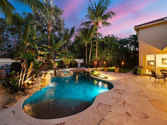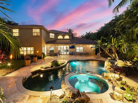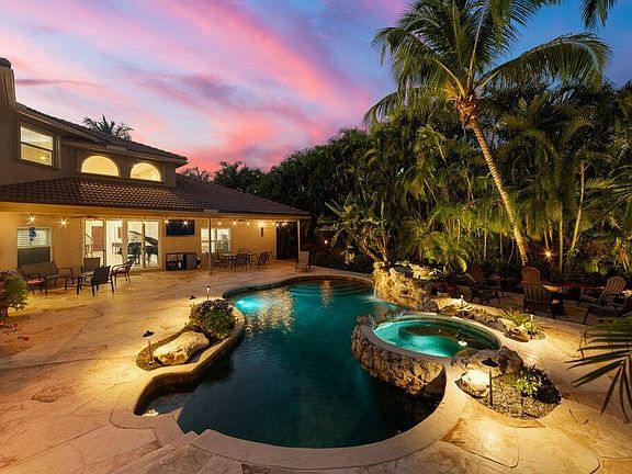 Welcome to the prestigious community of Stonehaven! The Stone Castle ll is a flagship model, and this rare 4747 total sq. ft. 5BR estate home is being offered upgraded, (new impact windows and doors 2022) and ready for a fabulous new family to love! I should begin with one of my favorite attributes of this incredible home, a custom high end heated saltwater pool, spa and light package. The stunning spa has custom stone surrounding plus a waterfall. The expansive pool deck compliments the new landscape lighting beautifully, and there is a large covered area for entertaining. The entire yard is a custom tropical landscaped retreat and a truly private oasis with no rear neighbor. The interior of the home is truly breathtaking, and is move in ready from top to bottom. The main floor includes the owner's suite, guest suite, two living areas, dining room, laundry room and 2 Bathrooms. Upstairs includes 3 bedrooms, bathroom and loft area. The lighting in the home has recessed light fixtures throughout.