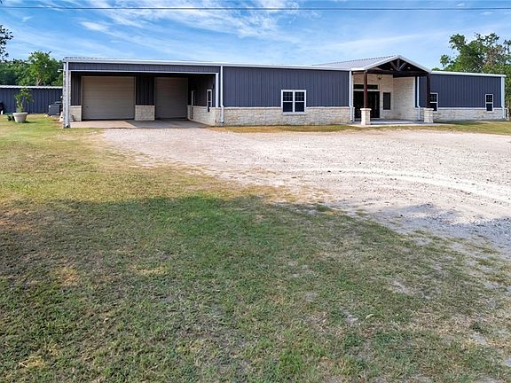 Nestled on a picturesque 10-acre tract that borders a serene creek, this stunning barndominium offers the perfect blend of rustic charm and modern luxury. Spanning over 4,200 square feet, the spacious home features 6 generously sized bedrooms and 4.5 well-appointed bathrooms, including multiple walk-in closets for ample storage. The heart of the home is a warm and inviting living area anchored by a beautiful stone wood-burning fireplace—perfect for cozy nights in. Outdoors, you'll find both covered front and back porches that invite you to relax and take in the tranquil views of mature, shady trees and a sparkling pool, ideal for hot summer days. Additional highlights include an oversized carport, as well as an expansive garage/shop area that provides endless possibilities for projects, hobbies, or extra storage. This unique property offers privacy, natural beauty, and an abundance of space both inside and out—truly a rare find for anyone seeking a peaceful country lifestyle with all the comforts of home.