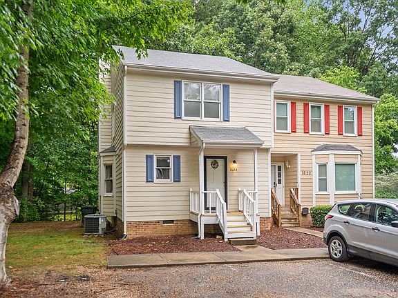 Listed for sale is this two-story, end-unit townhome located in a great location in Raleigh. Less than five minutes from I-40 and Cary Crossroads, this unit boasts three bedrooms and two and a half bathrooms. Downstairs you will find a kitchen with stainless steel appliances, a separate laundry room; and an open-concept dining room and living room. In the living room you will find a wood-burning fireplace, and off of this space is a door leading to a large deck. Outside storage is located to the right of the deck, and the backyard has mature trees which add to the privacy of this property. Upstairs has three bedrooms, including a primary bedroom with ensuite and large walk-in closet with wood shelving. The two additional bedrooms share a Jack and Jill bathroom. This townhome has LVP flooring throughout the whole home. The HVAC was replaced in 2021. Come see all this beautiful unit has to offer!