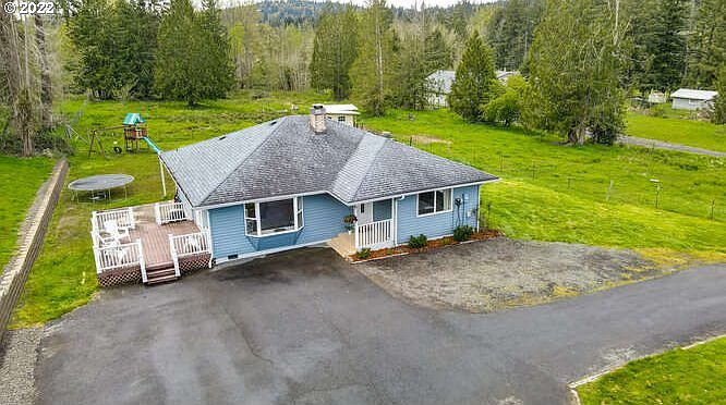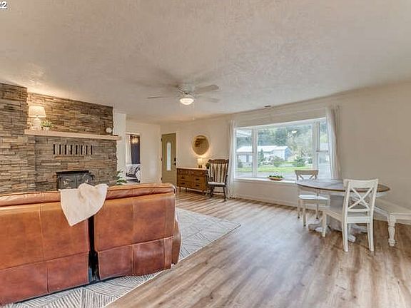 Charming craftsman home on 2+ acres! Featuring large windows for natural light, warm earth tones throughout, drawers/cupboards for lots of storage, forced air and heat pump. Updated appliances, light fixtures and custom tiling in bathroom. Layout includes large utility room, nice size living room, dining room, 2 oversized bedrooms, 1 bath with an additional bathroom hookup in utility. Backyard is set up with a large pasture for a cow or goats, or sheep!