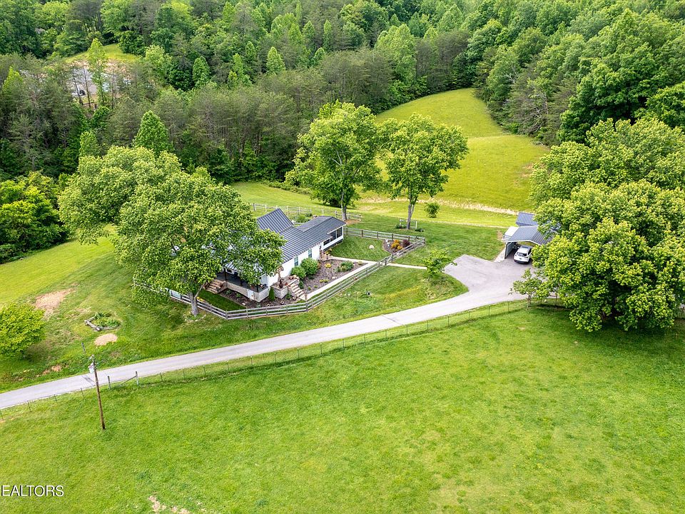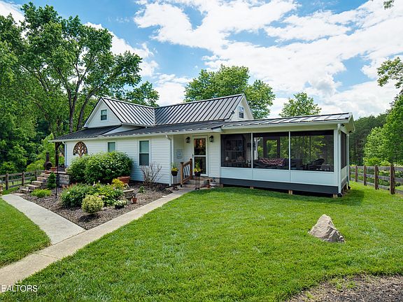 **Multiple Offers Received** All offers due by 5/20/24 11 am. Welcome to your dream farmhouse! This custom-designed and rebuilt home offers amazing mountain views and is conveniently located just 17 miles from downtown Knoxville and 11 miles from Sevierville. With 2 official bedrooms and 5 versatile rooms that can be used as bedrooms, this 1.5 bath, 1887 sqft home sits on 10.21 unrestricted acres of rolling farmland, including some wooded areas. 2.34 acres of the 10.21 sits across the street and can be subdivided and developed. Extensively remodeled from the foundation up in 2022, the appraiser has given this home an effective age of just 10 years. The cellar-style basement features original and new block walls, and has been waterproofed and treated for termites. The home boasts a standing seam metal roof, James Hardie siding, hardwood floors, granite countertops, a backup power generator, new HVAC, new water heater, new water softener, and a basement dehumidifier. This home even has electrically heated kitchen and master bathroom floors! The screened-in back porch includes a bed swing that stays, and the covered front porch, outdoor patio with firepit, and side deck provide ample outdoor living space. A nice farm fence encircles the home, perfect for keeping household pets close. The kitchen is equipped with KitchenAid appliances and a refrigerator, and the home features a master suite on the main level, hobby rooms, a walk-in shower, a carport, and a storage shed matching the home's exterior. Enjoy affordable county taxes and peace of mind with a recent appraisal at $650k, report available upon request. Don't miss out on this incredible opportunity!