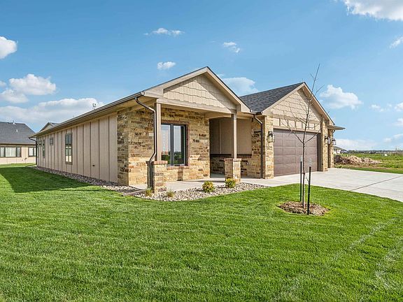 New Price, Same Luxury—Now $25,000 LESS! Indulge in maintenance-free living at 1622 S Dove Place—an elegant residence nestled within Dove Landing, an exclusive gated 55+ community in Goddard, KS. Just moments from the premier shopping and dining of New Market Square and west Wichita, this exceptional home offers both serenity and convenience. With no special tax assessments and a host of high-end features, this is a rare opportunity to enjoy timeless luxury in a gated neighborhood. Designed for effortless living, Dove Landing offers a greenbelt and HOA services that include lawn care, snow removal, and trash—so your days are free to enjoy the best of the area. Explore the scenic Prairie Sunset Trail from nearby Linear Park or spend your time at local attractions like Blast Off Bay Water Park, Genesis Health Club, coffee shops, City of Goddard Library and more. From the moment you step through the ZERO-ENTRY solid wood front door with sidelight to let in natural light and enhance the appearance of the entrance, you are greeted by soaring 10-foot ceilings and light-filled interiors that display elegance and warmth. The expansive living room features a stone thermostatic gas fireplace adorned with a wood mantel creating a perfect setting for both relaxing and entertaining. The gourmet kitchen is a true showpiece, offering custom cabinetry, granite countertops, an oversized island with seating, a large pantry, and premium stainless-steel appliances—all designed with the chef in mind. Adjacent, the dining alcove opens to a covered patio. The split floor plan ensures privacy, with the luxurious primary suite featuring a custom-tiled zero-entry walk-in shower, dual vanities with granite counters and illuminated mirrors, and a spacious walk-in closet that doubles as a concrete safe room. A secondary en-suite bedroom, an additional guest room/office, a stylish half bath, and a designer laundry room with custom cabinets and a folding counter complete the home’s refined layout. The oversized, insulated three-car garage includes sheetrock finish, automatic openers, and true zero-entry access for seamless convenience. HOA dues of $1,920 annually include trash service, lawn maintenance, and snow removal. A one-time $1,000 initiation fee applies. Looking to personalize your own luxury retreat? Custom builds are available through Steve Seiler Construction, LLC. Opportunities like this are rare—schedule your private tour today and experience the art of refined living at Dove Landing.