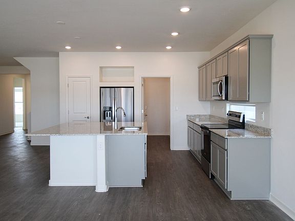 Ready to close in 30 days or less!!! This brand-new home is move-in ready, washer/dryer and stainless steel fridge all included! Amazing floorplan that offers a blend of comfort and functionality. At the heart of this home, you will enjoy an open kitchen featuring an oversized island, granite countertops, beautiful grey cabinets, and a large pantry with an abundance of storage space. This bright and open floor plan seamlessly connects the kitchen to the dining room and great room with plenty of space to entertain your guests, step outside and relax under the inviting enlarged covered patio. The spacious primary suite located on the main floor features a private bath and large walk-in closet. The additional two bedrooms downstairs offer plenty of space for rest and relaxation for everyone
