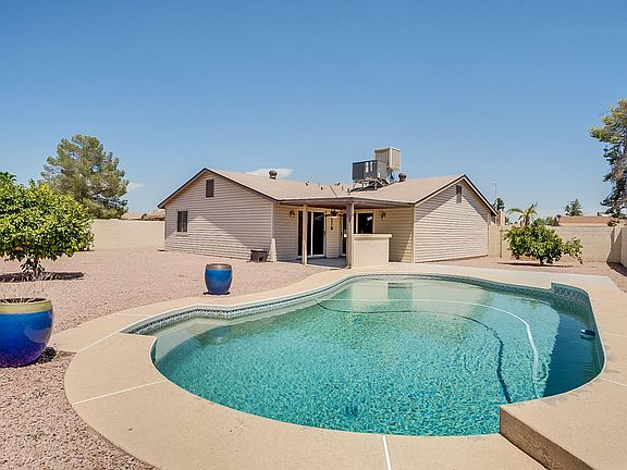 FANTASTIC SINGLE-LEVEL w/SPARKLING POOL & MOVE-IN READY! NO HOA! This 3BD/2BA sits in a quiet Chandler neighborhood & is CONVENIENTLY LOCATED near highly sought-after schools, Chandler Fashion Center, Loops 101 & 202, restaurants, shopping & more! OPEN kitchen w/appliances including a double-oven, island & pantry. Main living area boasts a beautiful Travertine-tiled fireplace! Master suite w/walk-in closet & private entry to the backyard. Guest bath features NEW subway-tiled shower/tub 2019! Ceiling fans t/o. Pre-wired for surround sound. SPACIOUS backyard features mature citrus trees, covered patio & paved area perfect for extra seating to entertain guests! RV gate. Easy to maintain front. **Exclusive opportunity to save thousands on this purchase! Ask your agent for more details!