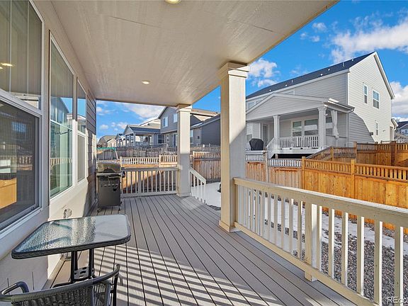 Dove Village Is Located In Parker, Colorado's Favorite Small Town That's Close To The Big City And All The Metro Area Has To Offer! On The Main Floor You'll Find A Private Bedroom/Full Bath Suite, An Oversized Family Room With Feature Fireplace, And The Most Spectacular Eat-In Chef's Kitchen In Town With Slab Quarts Countertops, Unique T-Shaped Island With Tons Of Space For Seating, Upgraded Cabinetry, Custom Backsplash, Full Stainless Appliance Package, Stunning Hardwood Floors, Tons Of Counter And Cabinet Space For Prep And Storage, And A Great, Real Pantry. Upstairs Your New Master Suite With Highly Upgraded Luxury En-Suite Bath, 3 Other Spacious Secondary Bedrooms, And A Large Loft Space That's Perfect For A 2nd Living Area, Theater, Game Room, Playroom, Or Office. Relax And Enjoy Colorado's Famous Outdoors On Your Extended Covered Deck. Home Features Two Furnaces/Two A/C Units with Separate Thermostat Controls, Exterior Access Door From Garage, Lighting Fixtures In All Bedrooms, Sump Pump, And Many More Features.