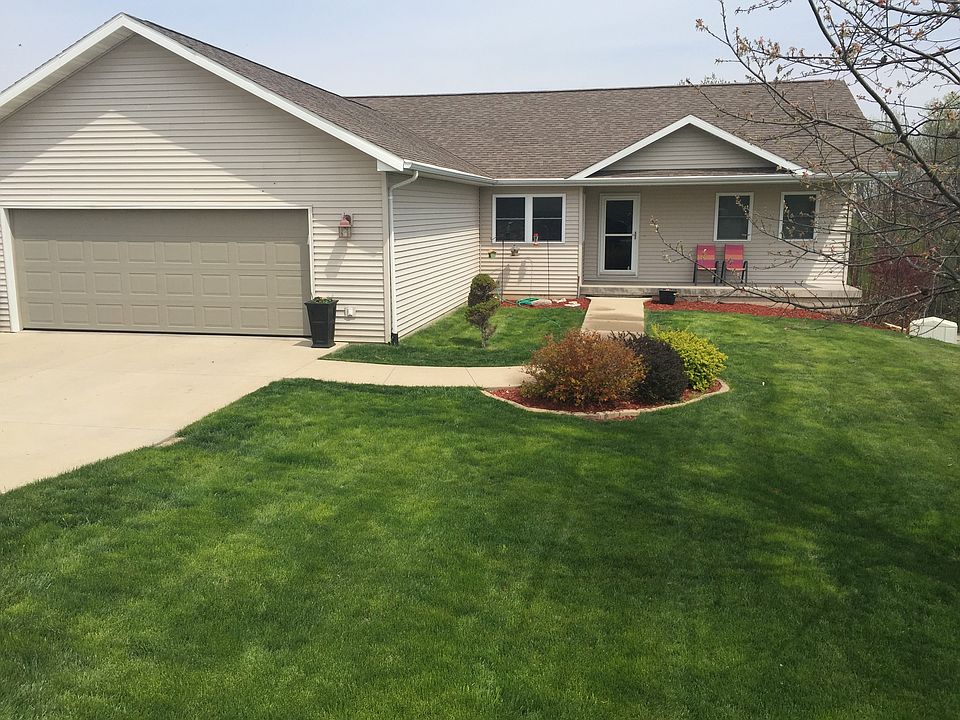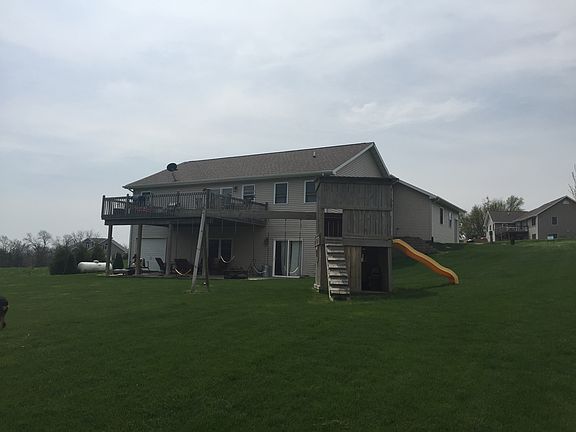 Spacious 4 bedroom, 3 bath, walk-out ranch on a 1+ acre lot located halfway between East Dubuque and Galena (East Dubuque School District). Quiet cul-de-sac in the country with friendly neighbors. Beautiful country view from large deck, playhouse/swingset and large patio adds to the charm. Nice garden in the lower yard with storage shed. Finished basement with additional bedroom, large family room with wood pellet stove, full bathroom, bonus room currently used as a toyroom but would make a great office or workout room. 18 ft x 11 ft garage and 20 ft x 4 ft area under the capped stoop in the lower level provides plenty of room for storage. Please call, text or email for private showing.