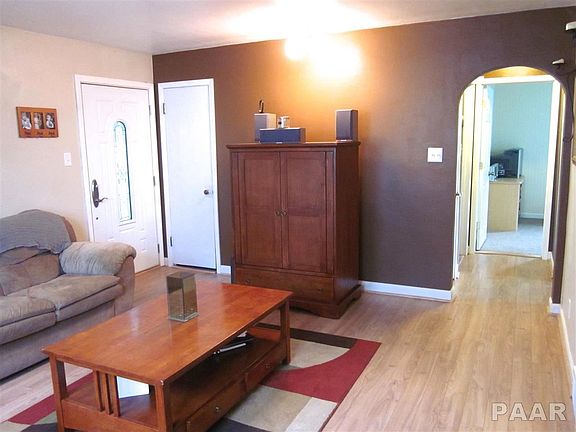 Updated 2, possibly 3 bedroom ranch located just 5 min from CAT Mossville, in award winning IVC School District. Many updates done making this home move-in ready: new roof, siding/gutters, floors and water heater, kitchen countertops, garage door, tile/shower in bath and updated windows throughout. Appliances stay including W/D. Large living room great for entertaining *w/ surround sound speakers* and fenced in backyard perfect for pets. Oversize 1 car garage has GREAT side space for tool chests, workbench, automotive work, etc. Large rec room space in basement currently used as 3rd bedroom.