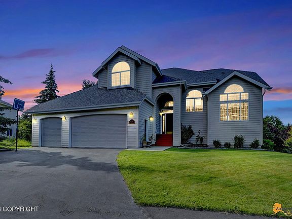 Nestled in the heart of Goldenview Park, this remarkable home offers an exquisite blend of luxury and convenience. Featuring an ensuite bedroom on the main floor, a grand owners' suite upstairs, and a basement theater, it caters to every aspect of modern living. What truly distinguishes this home are the sweeping views it commands - from the serene inlet to the twinkling city lights and themajestic Mount Susitna. Coupled with its proximity to the playground and school bus stop, this residence effortlessly marries practicality with awe-inspiring beauty. Step into your dream home, where style, comfort, and breathtaking vistas converge in perfect harmony.