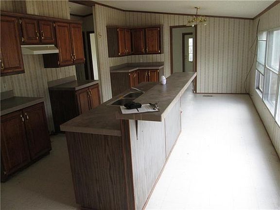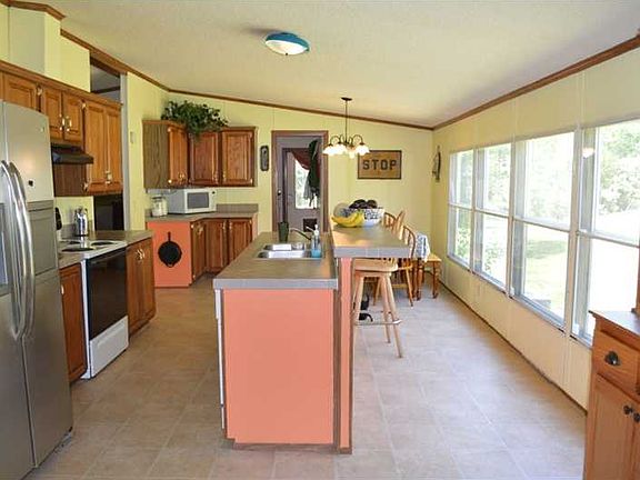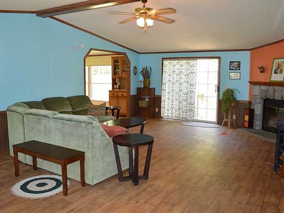 Really cute double-wide on 5 AC! New septic & new water heater. 2,128 SF, 3 BR, 2 ½ BA in a split floor plan on permanent foundation w/tie downs & pier runners, all electric. Huge family room w/corner wood-burning FP. Huge sunny eat-in kitchen w/island. Great master suite, large laundry w/separate entrance. Outbuilding. On city water but well on-site, just needs pump if want to use for watering. Down quiet dead-end road w/pretty pond stocked in 2013 & lots of trees. Fayetteville schools. As is.