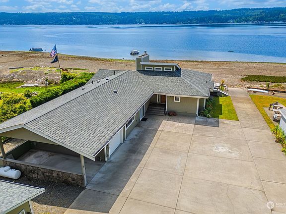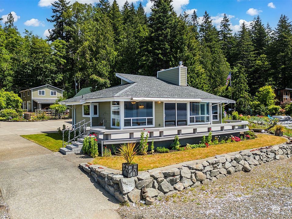 Situated on a point jetting out into Hood Canal, the views this home provides are over 180 degrees. This one story home with 77 feet of water frontage has southern exposure & panoramic views including Olympic Mountains & ever changing marine traffic. Property also has tidelands with loads of oysters and access to the best shrimping around. Home has a large deck at the waters edge and your personal boat ramp. Updated kitchen and plenty of large windows let you enjoy your sweeping views. 2 car garage on the property has a 1 bedroom caretakers unit above which also has a tremendous view looking over the main house. All this with beautiful landscaping and plenty of parking for all your guests you'll suddenly find wanting to visit.