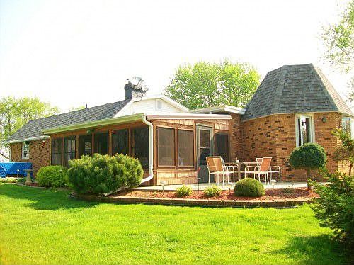 Beautiful, all brick ranch home overlooking 5.68 park-like acres. Gas fireplace in living room. Hardwood floor in dining room. Remodeled 3/4 bath with tile flooring. Oak cabinets in kitchen with new vinyl floor. Vinyl replacement windows throughout. Remodeled full bath has wood floor & solid surface countertops. 20x13 3 season porch with cedar lined walls & incredible views. New iron-out water system & water softener. Finished basement with dry bar & den/office, could be 3rd bedroom. Possible main floor laundry. Newer roof. New high eff furnace & AC. New well pump & pressure tank.New 36x45 wick building is insulated & finished with concrete floors, electric & water hook-up. --- Updated : 2012-04-13