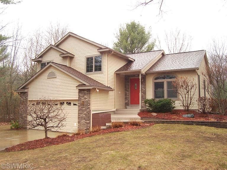 TAKE THE PRIVATE DRIVE TO this custom built 5 bedroom, 3 bath home situated on 2+ private wooded acres in Park Township. Features include cathedral ceilings, 6 panel doors, Anderson Windows, light & bright kitchen w/granite countertops, tiled back splash, snack bar, plenty of cabinet space & all new SS appliances, sink, faucet & light fixtures. Comfortable living room for relaxing & dining area has sliders to deck that steps down to patio, above ground pool/hot tub & the professionally landscaped yard. Cozy living room is warmed by the gas log fireplace. Upper level is dedicated to 2 bedrooms plus the Master Suite w/double closets & private bath with tile floor, solid surface countertops & tub/shower. Lower level includes 2 bedrooms & newly carpeted recreation room. 2 stall finished garage with H/C water & plenty of storage space. You'll love the setting & the location that's close to bike path, shopping, several parks & Lake Michigan is only 2 blocks away. Call to see it today!