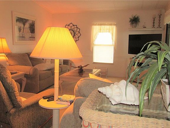 This 2 bedroom, 2 bath home is located in Lee Plantation. On an exterior lot, there are no back door neighbors! The home has a refreshed kitchen and newer roof. There are two lanais in addition to the interior space. The front lanai is large and makes for great afternoons reading on the porch watching the neighborhood activity. The side lanai is large and private. The flooring in the kitchen is new. Lee Plantation is a 55 and over gated community, tucked away from the seasonal bustle while close to the beaches.. There are activities and athletic opportunities. The community boasts a beautiful clubhouse, pool and spa area, along with tennis courts, shuffleboard courts and much more.