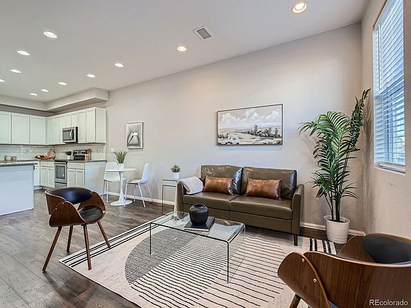 Modern and inviting, this two-story townhome in Avion Denver Connection offers comfort, style, and convenience. The main level features an open-concept kitchen with ample counter space, granite countertops, a central island, sleek white cabinets, and stainless steel appliances, all complemented by rich, wood-inspired laminate flooring. New carpet, the home exudes a clean and contemporary feel.