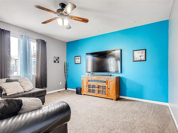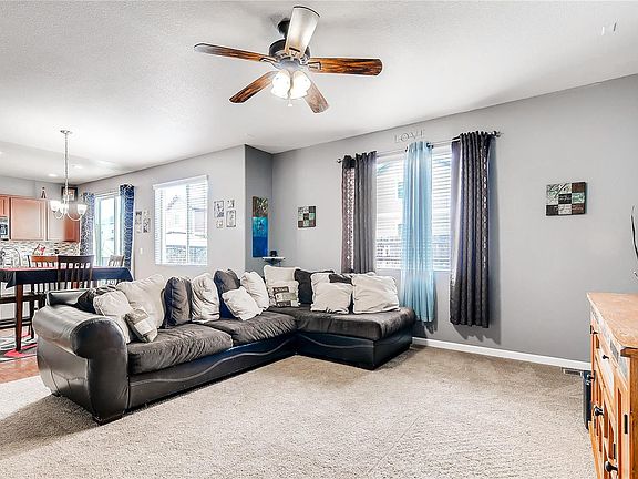 Welcoming from the moment you arrive! This lovely 2-story in Fronterra Village features 4 beds, 2.5 baths, living room, kitchen, loft, unfinished basement for future expansion and a 2 car attached garage. A few of the 'unseen' upgrades include surround sound pre-wire in the living room, ceiling fan pre-wire in all rooms, rough in basement plumbing and 9' basement ceilings. Other special touches include a dual vanity in the master bath, slab granite counters in the kitchen along with a glass tile backsplash, rounded corners, coffered ceiling in the master bedroom, central air and more. The energy efficient furnace, central air and ceiling fans keep this home comfortable all year long. Enjoy relaxing on the patio in back or people watching from the covered front porch. Pride of ownership shines throughout this cheerful home. Close to dining, shopping, entertainment and other amenities. A short commute to Denver, Longmont, Broomfield and beyond. Don't wait Welcome Home!
