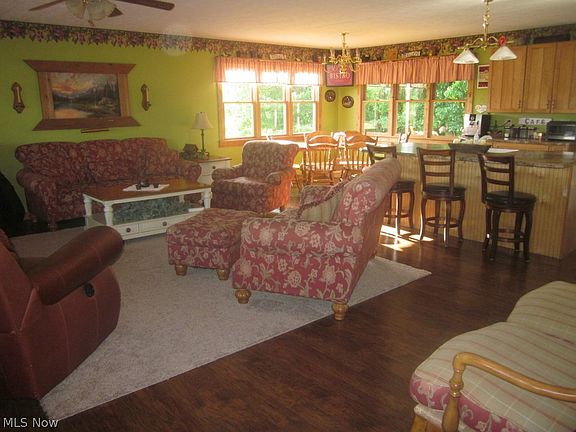 Peaceful, beautiful home on 5 acres in West Branch Schools. Nice open floor plan with an island in the kitchen and beautiful new countertops. Wonderful front AND back porch to enjoy nature. Ranch home with 2 bedrooms on main floor and 2 bedrooms and family room with kitchen area on lower level. Basement is well built with extra reinforced walls,13 course with large windows and lots of light. Workshop to the left of the house is 30x24, garage/pole building to the right is 40x32. Wonderful place to call home!