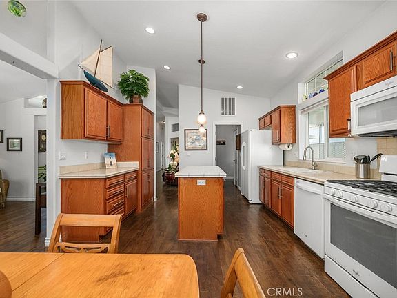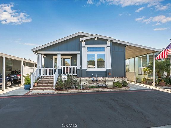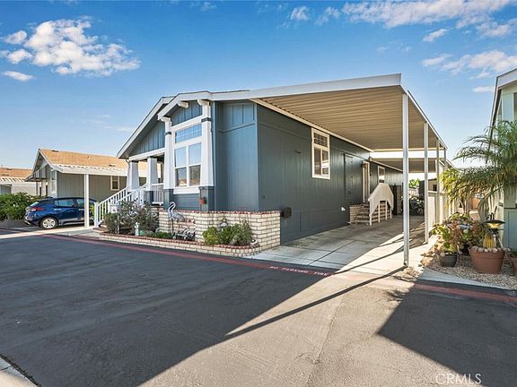 Sitting Pretty in highly desirable Rancho del Rey! A 55+ Gated Community nestled in the Huntington Harbour area. This 2006 SILVERCREST Craftsman Style features 3 spacious bedrooms and 2 full baths. Vaulted ceilings accented with raised volume ceilings in selected areas boast the architectural detailing that is hard to find in a manufactured home. Luxury, style and convenience define the kitchen that offers an abundance of space, natural light, storage and functionality. Other interior features and amenities include forced air heating and cooling, Plantation Shutters throughout the entire home, simulated wood laminate flooring in all rooms, spacious laundry room that offers a sink and overhead storage cabinets. The spacious master bedroom offers dual walk-in closets with plenty of space for a King size bed. The Master Bathroom features a Shower Panel Tower System with elegant tile work and glass door. The spacious living room area offers high ceilings with lots of windows that create a very bright and open floorplan, simply put this home has an awesome vibe inside no matter where you are. Exterior features include stellar curb appeal boasting nicely appointed brick and masonry work, a covered front porch, large storage shed, interior location with guest parking nearby. This home is really something special and convenient to shopping, sandy beaches, freeways, restaurants, popular Huntington Beach Main Street, wetland hiking trails and much more. This home is sure to please and it's situated in Rancho del Rey arguably the best Manufacture Home Park for Location, Quality of Life and Value in Huntington Beach.