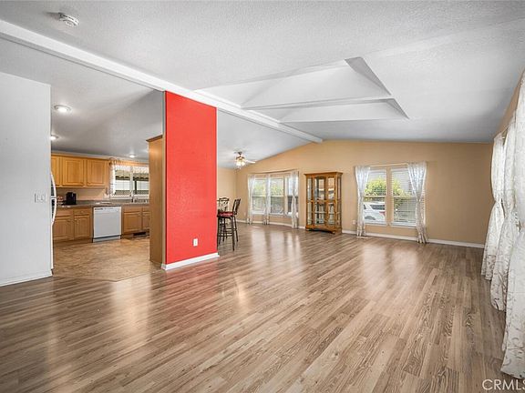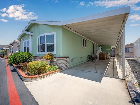 This 55+ community home really delivers! Situated in the highly desirable gated community of Rancho del Rey Mobile Estates Adjacent to nearby Huntington Harbour and convenient to shopping, sandy beaches, freeways, restaurants, airports, hospitals and much more. This home offers a peaceful and quiet interior location that is convenient to the main clubhouse amenities that feature a year round heated pool and spa, sauna, banquet facilities, golf putting green, billiard tables and outdoor barbeque patio area. Interior features of this home include forced air heating and cooling, dual pane windows, tasteful laminate flooring, open floorplan skylights in the living room that provide natural lighting. The master bedroom features plenty of space for a king sized bed and furniture and a spacious walk in closet. The master bath offers dual sinks with an easy walk in shower and a linen closet for towel storage. Exterior features include covered two car carport, covered side porch with nicely appointed masonry work adding curb appeal and low maintenance. Other exterior features include a spacious storage shed and vinyl fencing for added privacy. Rancho del Rey is hands down the best value Manufactured Home Park in Huntington Beach offering an affordable option to reside in a Multimillion neighborhood for a fraction of what others pay in the same area.