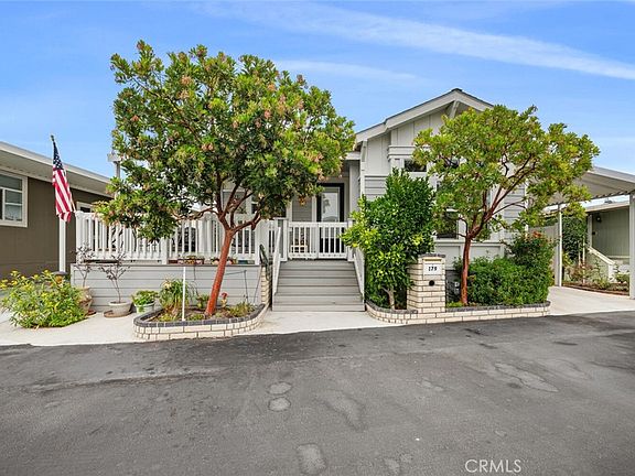 This 55+ Senior Living Park Home has it all! Situated in Rancho del Rey one of Huntington Beach’s most highly sought after Manufactured Home Parks. Convenient to Sandy Beaches, Coastal Communities Hiking Trails, Shopping, Fine Dining Restaurants and much more. Interior features include, open floor plan, high ceilings with crown moulding throughout all rooms, beautiful simulated wood laminate flooring, highly efficient Thermo pane Windows and inside laundry room with walk-in pantry. The spacious kitchen opens to the living room featuring a large Island with quartz countertop, separate dining area and plenty of cabinet space. Other kitchen features include a stainless appliances, dishwasher, built-in microwave oven and gas range/oven. Master bedroom offers plenty of space for a King size bed and furniture, the on suite Master Bath has a spacious walk-in closet, dual sinks and walk-in shower. Exterior features include beautiful mature trees and landscaping, wraparound covered patio/porch, covered carport for up to 3 cars, storage shed and side yard patio with room for outdoor furniture for entertaining family and friends. This home is situated in a very secluded interior area of the park, if tranquility and being close to the ocean is what you are after then this is the one for you.