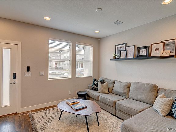 Well maintained Urban Contemporary Townhome at Denver Connection West. Avian 3 bed 2 1/2 bath with open floor plan and upgraded trim package. Smart security system, whole house humidification, whole house AC and walk-in closets. Engineered hardwood flooring, dining area, 36" kitchen cabs, quartz countertops and upgraded stainless kitchen appliances and washer/dryer included. Crawl space with ample storage. Very low HOA. Great pool, clubhouse, dog park, playground and large park coming soon. Easy highway access, quick drive to LoDo and DIA. Move in ready! Call for your showing today.