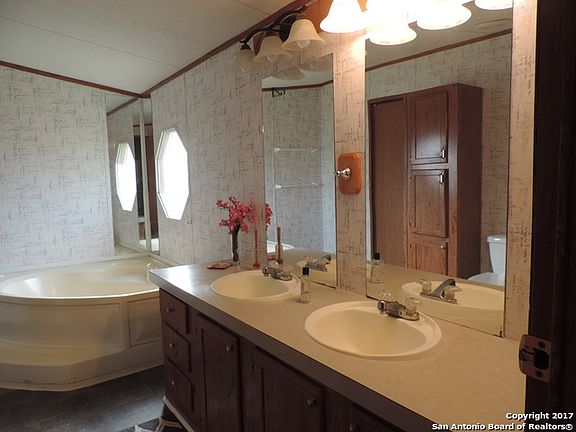 Secluded country living*City conveniences*5/2 MH on 1.5 acres*Master has additional bedroom connected to serve as nursery or home office*Garden tub*Separate shower*Dual vanities*2 living areas*Large formal living room + family room w/wood burning fireplace & nice view of back yard*Formal dining*Breakfast area*Counter top microwave & washer/dryer convey*Roof replaced 2011*New water heater*5 A/C window units & 3 accordion heaters*Metal 2 car carport*Established yard*Completely fenced*Mature oak & fruit trees