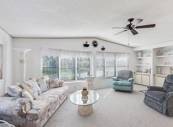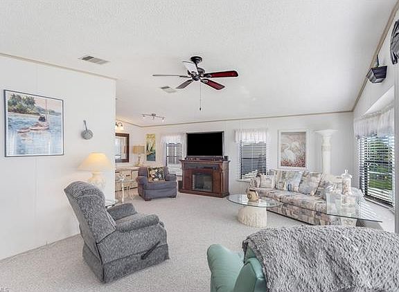 Enjoy carefree living and year round Florida sunshine in this 2 Bedroom, 2 Bath home that is mostly furnished, well maintained and comes with a 1-Year Home Warranty. Updated with stainless steel fridge, microwave, wall oven and dishwasher, Hunter Douglas fans throughout, blinds, lights fixtures, sink faucets, bathroom vanity mirrors, flooring and more. Home also has a Whirlpool downdraft cooktop, washer and dryer, new tie downs, central air and a tankless water heater. Located just minutes from Fort Myers Beach, tucked away in a quiet, gated community off Pine Ridge Road. Lee Plantation is a 55+ community with an active social calendar and beautiful clubhouse with heated pool and spa, tennis and shuffleboard. Lawn care, landscaping, irrigation and amenities maintained by association with modest fees of $430/quarter. Schedule your private tour today!