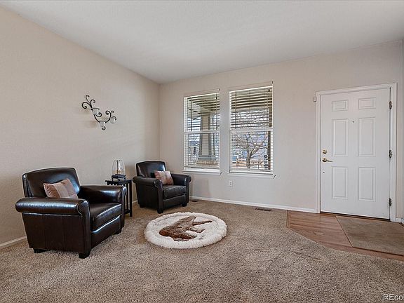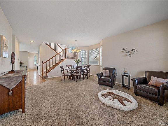 Welcome to this great home backing to the golf course in the Villages of Buffalo Run. Featuring a highly sought after main floor bedroom plus a Primary bedroom with En Suite and 2 other bedrooms upstairs. The oversized loft offers such great space for whatever you need. Entertainment area, home gym, office space or play area just to name a few ideas. As you step inside, you'll be greeted by a spacious living and dining room. The eat in kitchen has many wonderful cherry cabinets, tile countertops and a lovely view of the golf course. Each of the four bedrooms are generously sized, providing plenty of space for relaxation and privacy. The Primary Suite also faces the golf course and features a walk-in closet with a window and an en-suite bathroom complete with a luxurious soaking tub and a separate shower. The two remaining bedrooms share an attached bathroom plus a built in cabinet for linens. Laundry with utility sink upstairs is a major bonus! Other notable features include a spacious 3-car garage and a full unfinished basement for you to personalize as you like. The backyard has an oversized deck with that golf course and mountain view perfect for entertaining or simply relaxing. Whether you're hosting a summer barbecue or simply enjoying a quiet evening under the stars, this backyard is sure to be your go-to spot.