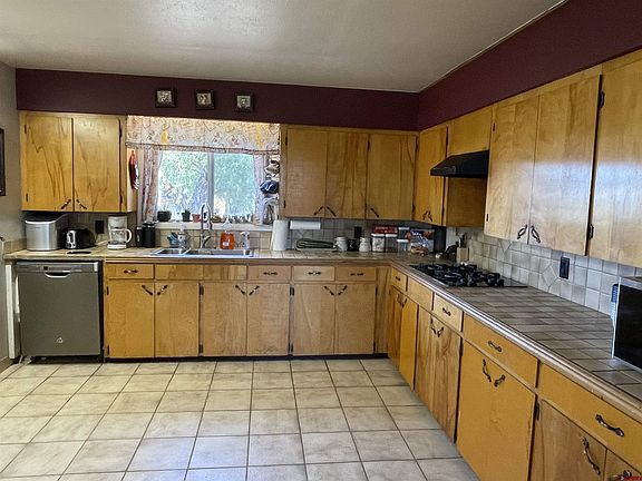 This 1,296 sq.ft. home sits on .59 acres with irrigation water, a large shop/garage for to work in or park your cars, and a shed for storage/workspace. The home has 3 bedrooms 1.5 bathrooms and has a huge view out the front windows. The kitchen is large with multiple cabinets for storage and there is also a basement living space. The home sits on a dead-end road has lots of trees to help shade your yard and outbuildings.