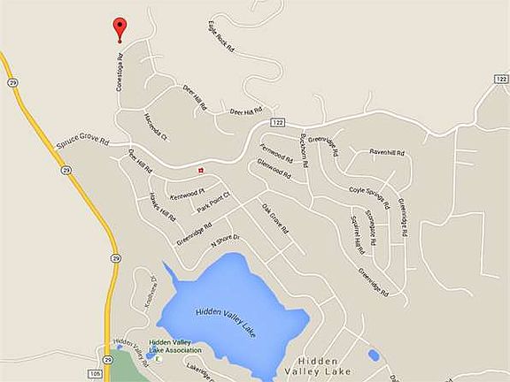 0.648 Acres Residential Land Hidden Valley Lake California Reference #: CALAK3008 APN: 142281010 Parcel Size: 0.648 Acres Property Address: 16225 Conestoga Rd, Hidden Valley Lake, California 95467 County: Lake Zoning: R1-RD-WW Cash Price: $ 15,900.00 Owner Financing Also Available -- NO Credit Check! Payments: As low as $ 236.45 Down Payment: $ 4,900.00 Financed Sales Price: $ 22,900.00