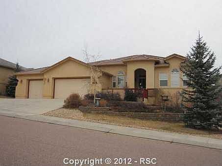 Stucco ranch style home with tile roof and an unobstructed view of Pikes Peak and the park. High ceilings greet you in the large foyer that is open to the great room with built in and lined with windows. Main level consists of the large master bedroom w/private 5 piece bath w/jetted, walk in closet and new tile flooring and countertops.