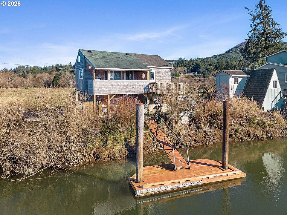 Where the wild things play. Fish leap, river otters roll, and sunsets shimmer along this magical stretch of the Nehalem River: right outside your door. This efficient 1bd/1ba cabin delivers more than its footprint suggests, thanks to efficient design and thoughtful upgrades.Custom shutters open wide to blur the boundary between indoors and out, expanding the living space onto the covered riverfront deck- your all-season spot to watch the water, sip coffee, or stay dry on those soft coastal rain days.The cabin has been elevated above flood elevation, creating valuable space below: a single-car garage, plus room for storage, gear, or a workshop. Launch a kayak from the shoreline, cast a line from the dock, or relax while wildlife drifts past—this river changes every day, and you’ll have a front-row seat.Just minutes from the coastal communities of Nehalem, Manzanita and Wheeler, and only 90 minutes from Portland, this cabin location couldn’t be better! Get away from it all while not having to go too far. Short term rental may be a possibility here- buyer and buyer’s agent to do due diligence.