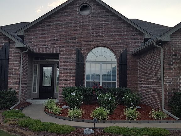 Pending sale. Well maintained split floorplan. Master bedroom has walk out door to patio to enjoy the large backyard overlooking country setting and wonderful sunsets! Large bedroom with attached master bath and his/hers closets on each end, Jacuzzi tub, shower and toilet in one end of house with laundry room, kitchen with nook, formal dining room with enormous ceiling. On the other end of the house are 3 bedrooms, a full bathroom. The third bedroom could be used as an office. The house is joined by a large living room with gas log fireplace. Recent upgrades include insulated overhead garage doors with Chamberlain openers, hot water tank, disposal, microwave, dishwasher, 16 camera security system, split rail fence, Trane complete central HVAC heat pump system, Generac standby generator, inground 500 gallon propane tank that has been filled ( used for generator and gas logs only ), 30 year roof with guttering, roof vents and added extra insulation to attic which has 450 square feet floored. Patio has been extended to place your furniture for those summer afternoon cookouts! Bonfire pit, inground fire brick cooking pit with all the trays and racks included. 1.03 acre yard with plenty of landscaping, maple, spruce and redbud along with the coveted Japanese dwarf maple and Southern Magnolia. Custom blinds, solar window film, ceiling fans, and appliances remain. We can show history of utility bills so you won't get surprised. This house operates cheap after the upgrades! THIS IS A SMOKE FREE HOME! This house is move-in ready so lets set a time to view. Call Dave (918)402-0919