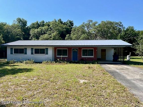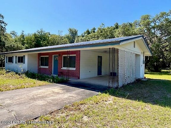 ACTIVE- UNDER CONTRACT! NOW OPEN TO FHA & VA FINANCING. Located in central Hernando County lies this cute, ONE OWNER starter home on acreage! This BLOCK HOME features 3 bedrooms & 1 bath with METAL ROOF, DOUBLE-PANE SLIDING WINDOWS, NEWER WELL, HOT WATER HEATER, & DRAIN FIELD ON 2.4 ACRES! 1 car carport offers covered parking & utility room with washer/ dryer hookup. HOME IS MOVE-IN-READY! Under the carpet lies Terrazzo flooring throughout so with just a little time & TLC, this home could be turned into a real beauty! Storage barn with 2 bays and old uninhabitable apartment exist on the property and offer a separate septic system, water, & electric. 2 wells, one just needs a tank. Large Oaks, Crape Myrtle's, & Azaleas scatter the property. Wooded on 3 sides for privacy. Zoned AR2 so bring the animals to this HIGH & DRY property! Being centrally located puts you within 10 minutes of shopping & allows for an easy commute via Suncoast Pkwy/ 589 or I-75 to surrounding cities.