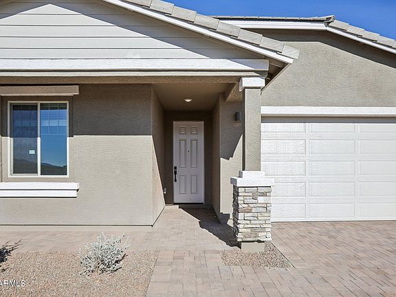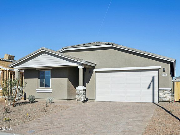Additional highlights include 2" faux wood blinds, a washer and dryer, and luxurious finishes throughout. Set within the gated Visara community in Surprise (163rd Ave & Visara Pkwy), residents enjoy resort-style amenities including a pool, basketball court, BBQ/picnic areas, tot lot, community trails, and quick access to Loop 303 and Route 60.